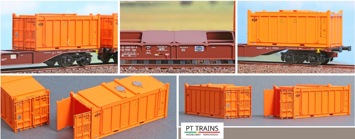 Zusatzset 3-tlg. 60‘ Sgns TOUAX Wagen, jeweils beladen mit zwei Bulk Containern der emilianischen Gesellschaft „Dinazzano Po“.
