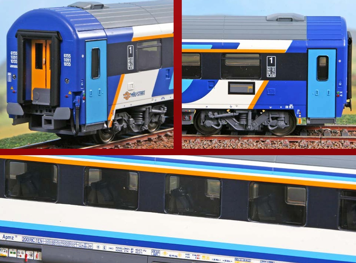 Salonwagen 1. Klasse Apmz111 in aktueller MÁV-Start-Lackierung mit gelbem Band ab 2023