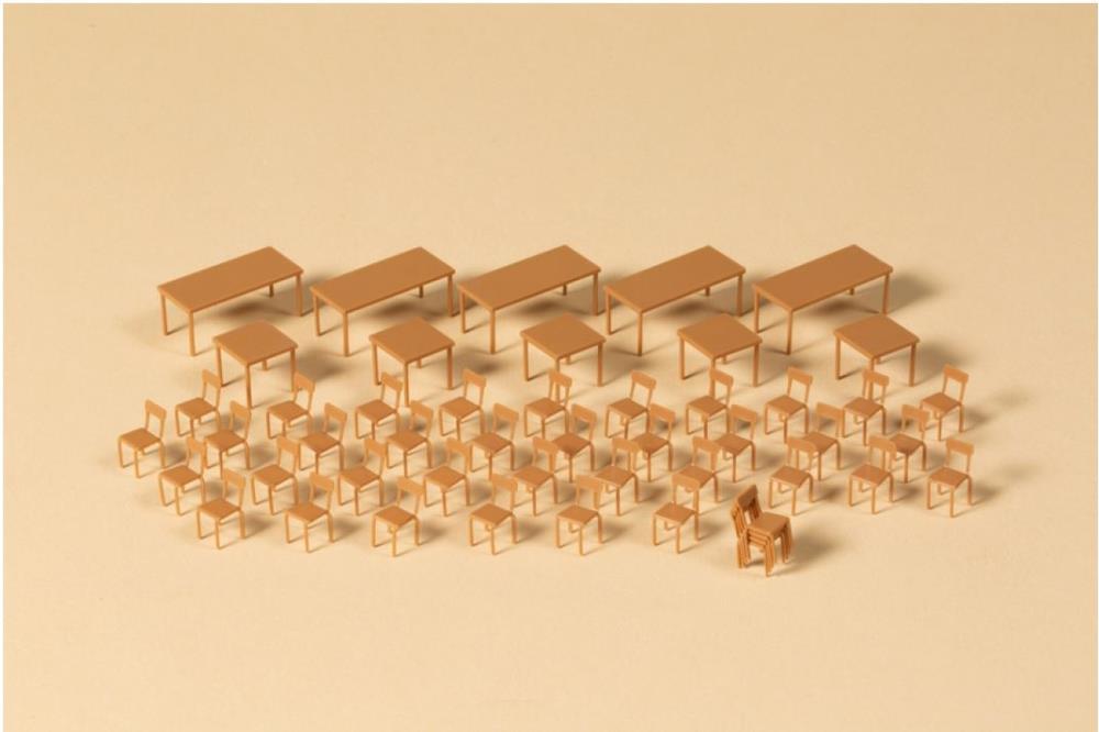 Für Feiern mit vielen Gästen eignet sich das Sortiment von Stühlen und Tischen. An die rechteckigen und quadratischen Tische passen jeweils vier Stühle. Sie können, weil stapelbar, platzsparend gelagert werden. Ideal für die Gestaltung lebendiger Alltagsszenen.