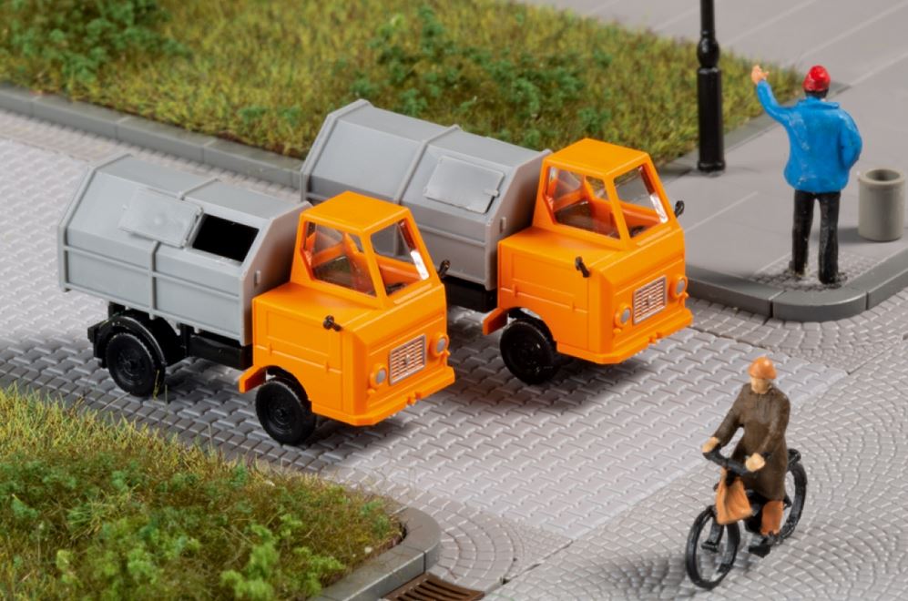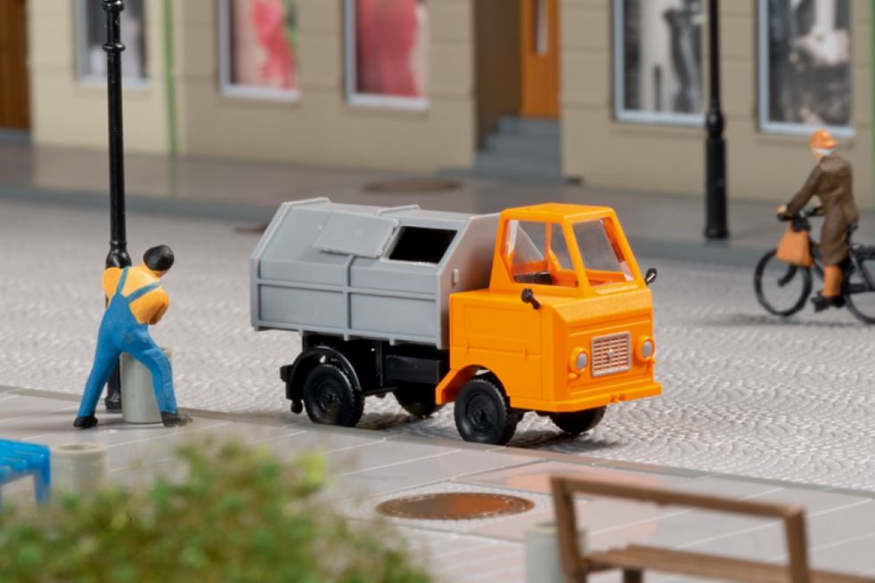 Bausatz. Der Multicar M22 wurde von 1964 bis 1974 im VEB Fahrzeugwerk Waltershausen in mehreren Aufbauvarianten hergestellt. Diese Ausführung kam vorwiegend zum Einsatz, um kleine Abfallmengen, z. B. aus Papierkörben, zu entsorgen. Mit vorbildgerechter Bereifung, Spiegel und Hängerkupplung. Die Einfüllluken können geöffnet oder geschlossen dargestellt werden.