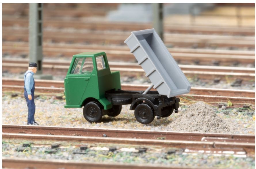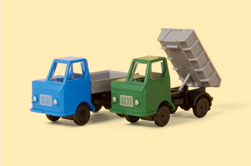 Der zuverlässige und vielseitig einsetzbare Kleinlastwagen Multicar M22 erscheint nun auch in der Nenngröße N und das gleich im Doppelpack. Obwohl sehr klein, sind die Fahrzeugmodelle fein detailliert. Die beiden Versionen in unterschiedlichen Farbgebungen haben als Aufbau eine Ladepritsche bzw. einen Muldenkipper. Die Lampen und der Lufteinlass sind bedruckt.