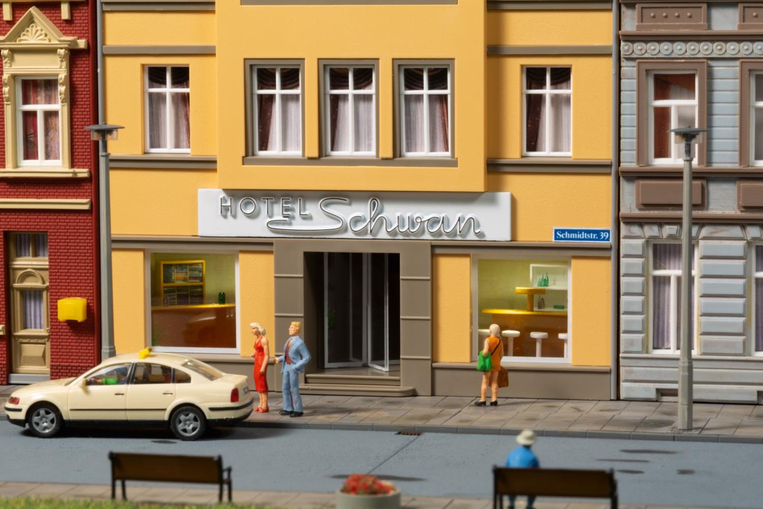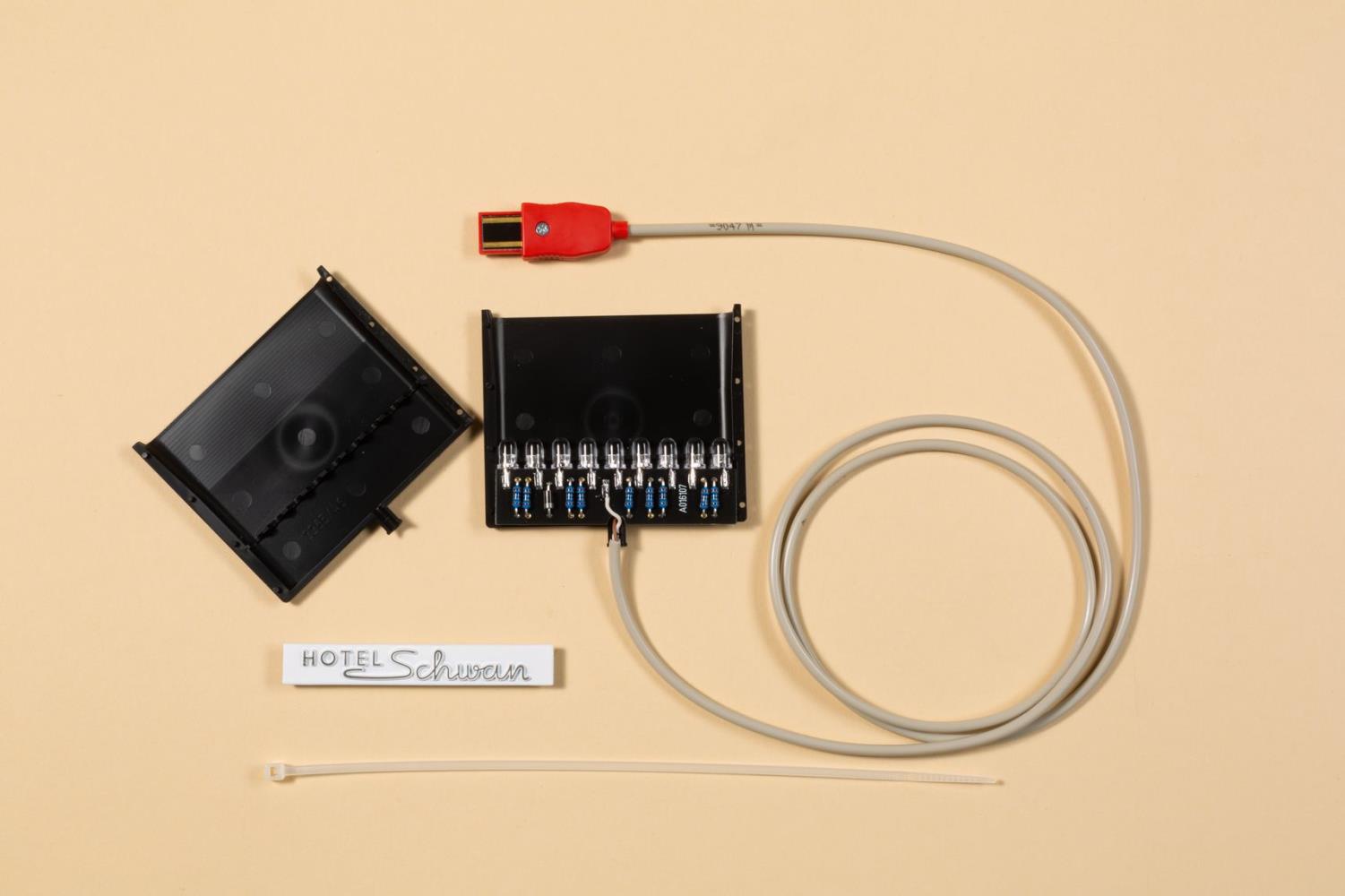 LED-Beleuchtung Hotel Schwan. Bausatz. Erfahrung im Löten und Kenntnisse im Umgang mit elektronischen Bauelementen erforderlich! Funktionsfähige Leuchtreklame, welche in unsere Gebäude 11471 und 11472 (weitere in Vorbereitung) eingebaut werden kann. Mit bastlerischem Geschick auch in anderen Gebäudemodellen einsetzbar. Spannungsversorgung über USB-Anschluss.