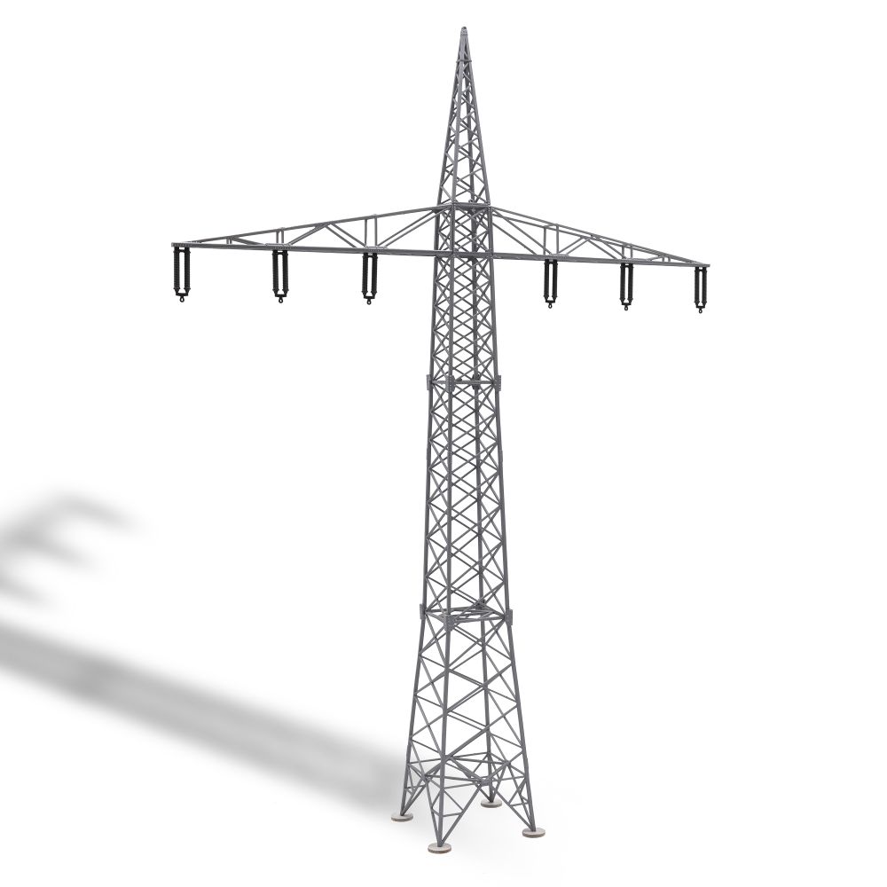 Bausatz für einen fein detaillierten Freileitungsmast zum original getreuen Nachbau einer Hochspannungsleitung.