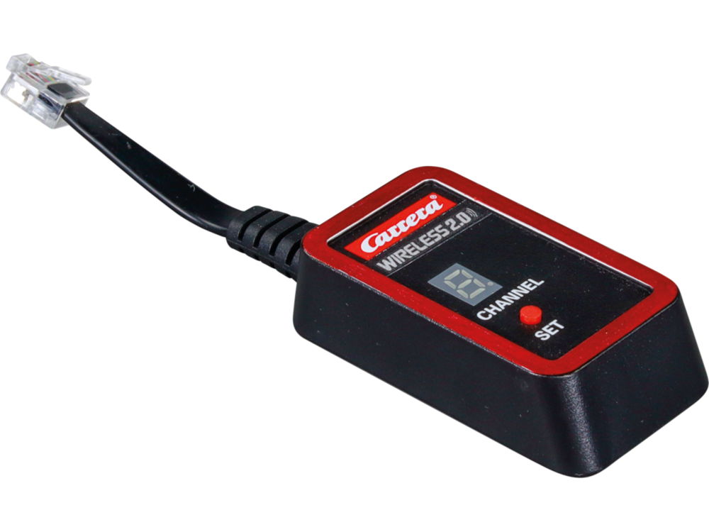 Empfänger für WIRELESS 2.0 Controller DIGITAL 132 und DIGITAL 124 DIGITAL 124, DIGITAL 132 Für problemloses kabelloses Fahrvergnügen Packungsinhalt: 1x 2.4 GHz WIRELESS 2.0 Empfänger Das Bindeglied zwischen Carrera Bahn und WIRELESS 2.0 HandreglerDer WIRELESS 2.0 Empfänger wird benö tigt, damit die WIRELESS 2.0 Controller mit dem Fahrzeug verbunden sind. Ein WIRELESS 2.0 Empfänger für alle Fahrzeuge ist ausreichend. D.h. es können bis zu sechs Fahrzeuge angeschlossen werden. Eins etzbar ist der Empfänger für DIGITAL 132 oder DIGITAL 124 Bahnen. Einfach den SET-Knopf am Empfänger drücken, daraufhin den Binding-Knopf an der Oberseite des Controllers drücken, schon ist der WIRELE SS+ Controller mit der Bahn verbunden. Für die weiteren Controller geht man genauso vor. Mit den WIR ELESS+ Controllern in Verbindung mit dem WIRELESS 2.0 Empfänger erlebst Du spannende Rennen in der D TM, GT3 oder einer anderen spannenden Rennserie auf Deiner eigenen Carrera Bahn.Hinweis zur Komp atibilität von Carrera Wireless 2.0 mit dem bisherigen 2.5 GHz Wireless+ System:Wireless 2.0 Handr egler können nur mit dem Wireless 2.0 Empfänger betrieben werden, entsprechend funktionieren die bis herigen Wireless+ Handregler nur mit Wireless+ Empfängern. Ein Parallelbetrieb ist jedoch möglich, w enn sowohl ein Wireless 2.0 Empfänger 20010122 als auch ein Wireless+ Empfänger 20010112 an der Carr era Digital Control Unit angeschlossen sind, es dürfen lediglich die Adressen der Fahrzeuge nicht do ppelt vergeben werden.