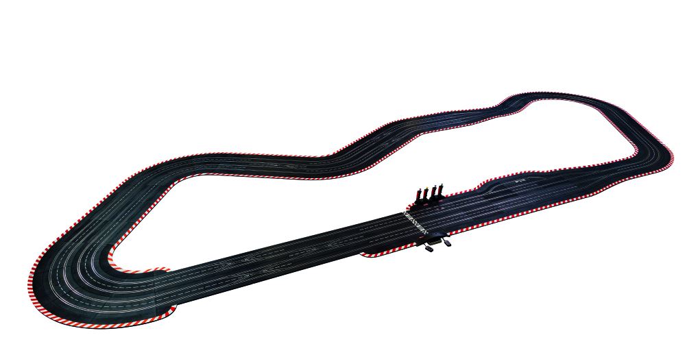 Schienenset 28,5 m + 4 Digital 124 Fahrzeuge: Porsche 911 RSR "Carrera, No.93" + BMW M4 GT3 „Schubert Motorsport, No.10" + Porsche 911 RSR "Ebimotors, No.80" + Chevrolet Corvette C8.R "No.4". CONTROL UNIT, 4 WIRELESS 2.0 Handregler, WIRELESS 2.0 Empfänger, DOPPELWEICHEN, Geraden, Kurven (Radius 2 und 3), Pit Stop Lane und Position Tower. APP CONNECT;