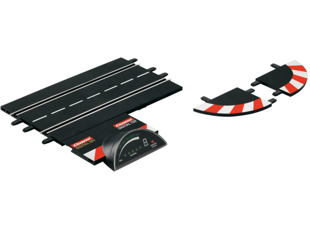 Carrera Fahrer Display mit LED-AnzeigeDIGITAL 124, DIGITAL 132Zeigt den Tankinhalt, die Anzahl d er Pit Stops (max. 10) sowie die aktuelle Rennposition an Behalte die Kontrolle! Mit digita len Features wird die Rennaction auf Deiner Slotcarbahn nochmals gesteigert. Das Driver Display ist eines dieser coolen Zubehörartikel für die Carrera DIGITAL 124 und DIGITAL 132, die der Rennstrecke nicht nur ein optisches Highlight verleihen, sondern auch mit spannenden Funktionen punkten. In Verb indung mit der der Control Unit (30352) und der Pit Lane (30356) wird Dir auf dem LED-Display nicht nur die aktuelle Rennposition angezeigt, sondern auch Tankinhalt, Drehzahl und die Anzahl der Pitsto ps. Mit diesen Informationen hast Du nun viel mehr Spielraum, taktisches Geschick in Deine Fahrkünst e einfließen zu lassen und so am Ende des Rennens als Sieger durch die Ziellinie zu fahren. Der Driv er Display wird mit einer Adapter Unit im Schienen-Maßstab 1:24 und zwei Abschlussstücken geliefert.