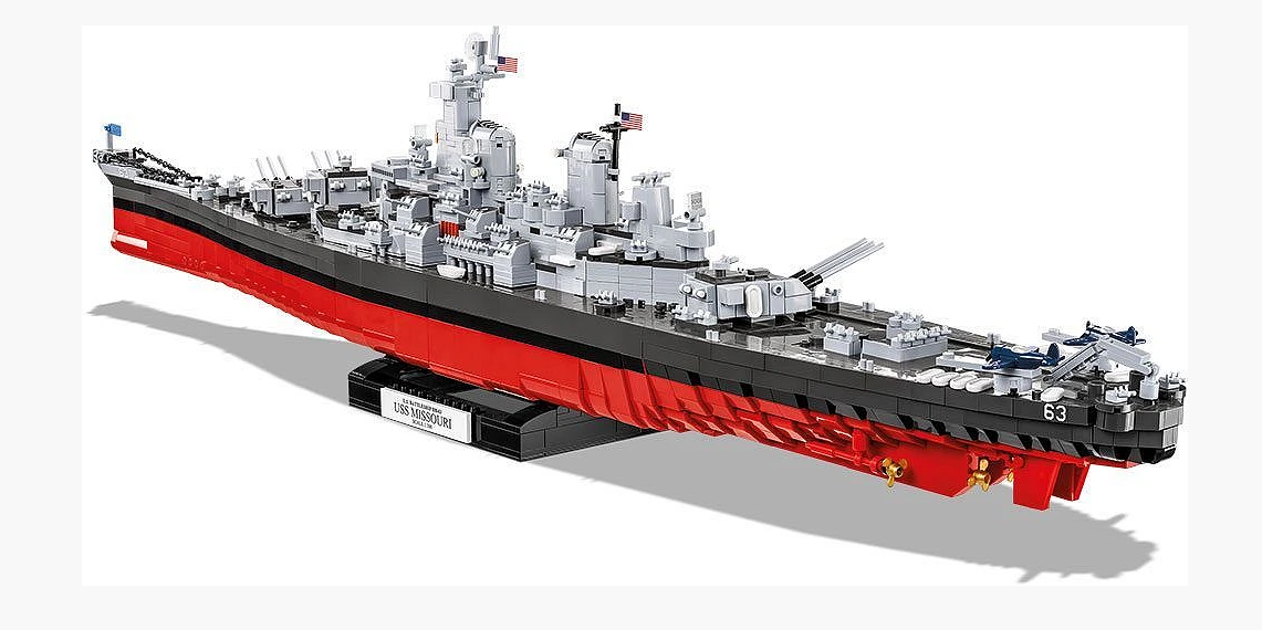 Ein Modell aus COBI-Bausteinen im Maßstab 1:300 ist eine echte Herausforderung für alle Baumeister. Es besteht aus 2655 Elementen und erfordert mehrere Stunden intensiven und spannenden Zusammenbaus. Es ist genau 92 cm (36,2 ") lang und 20,5 cm (8") hoch. Es hat bewegliche Elemente wie Artillerietürme und Geschützrohre, Propeller und ein Ruder. Hochwertige Drucke ermöglichen es, noch mehr Details zu erfassen, die das blockförmige Schiff sehr attraktiv aussehen lassen! Dank der intuitiven Anleitung, die auf detaillierten Illustrationen basiert, ist der Bau einfach und bereitet keine Probleme. Zum Set gehört ein spezieller Blockständer, auf dessen Platte der Name des Schiffes aufgedruckt ist. Das Schiff sieht darauf sehr beeindruckend aus, niemand wird unbeeindruckt bleiben! Die legendäre USS Missouri wird eine einzigartige Dekoration für jede Sammlung von Geschichts-, Seefahrts- und Militärliebhabern sein. Bauen Sie Geschichte, Stück für Stück, mit COBI.