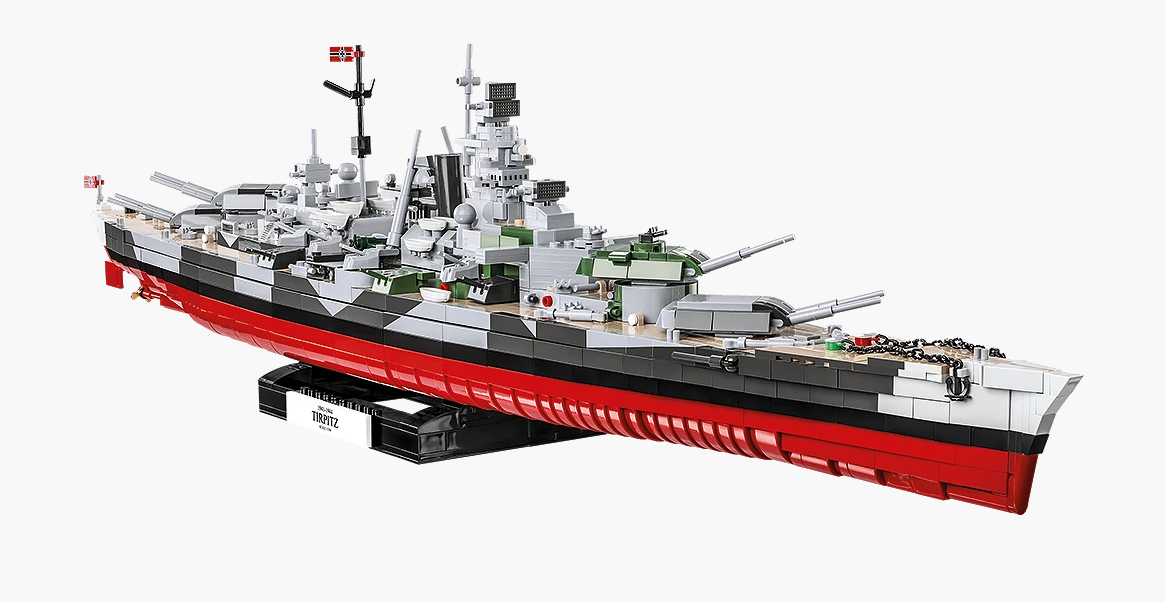 Das von der Firma COBI erstellte Schiffsmodell wurde im Maßstab 1:300 produziert. Es hat fast 2.810 Elemente und ist 87 cm lang. Dank der Verwendung der neuesten verfügbaren Elemente und fortschrittlicher Konstruktionstechniken spiegelt das Modell die Proportionen des historischen Schiffes originalgetreu wider und behält alle wesentlichen Elemente bei, einschließlich der ursprünglichen, sehr charakteristischen Tarnung. Es verfügt über zahlreiche bewegliche Teile wie Propeller, Ruder, drehbare Türme und Kanonenrohre, die angehoben und abgesenkt werden können. Das Set enthält auch einen sehr stabilen und ästhetischen schwarzen Ständer mit einer Platte, auf der der Name des Schiffes aufgedruckt ist. Da es sich um ein großes und recht komplexes Modell handelt, empfehlen wir es vor allem erfahrenen Sammlern und älteren, erfahrenen Ziegelfans. Es muss nicht geklebt oder bemalt werden, da sein gesamter Körper und seine Elemente aus COBI-Bausteinen bestehen.