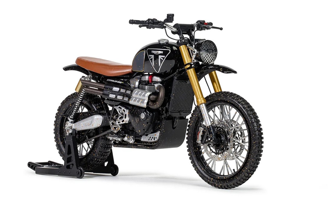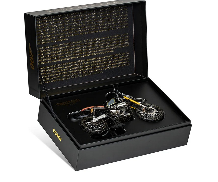 Dieses Triumph Scrambler 1200 XE Die-Cast-Modell aus dem Film Keine Zeit zu sterben (No Time to Die) ist genau das, was man von der stilvollen Filmreihe erwartet.