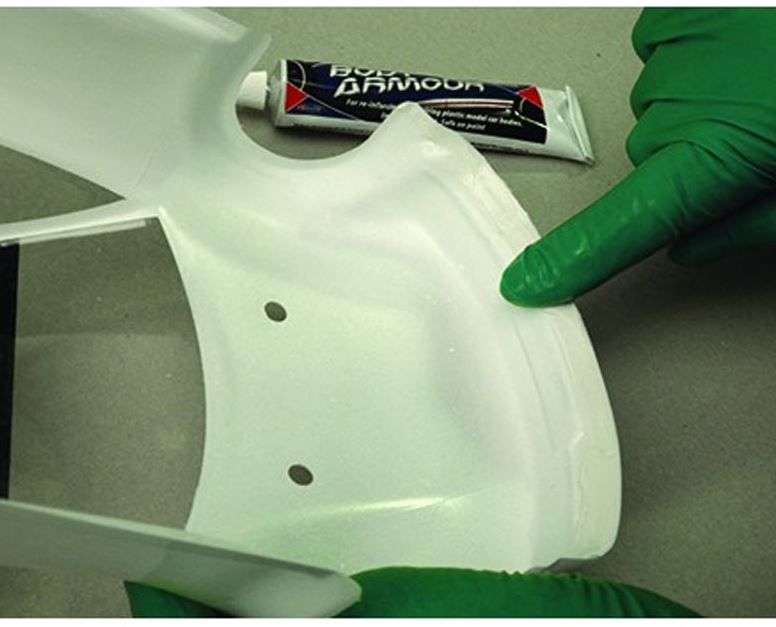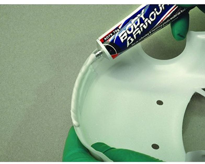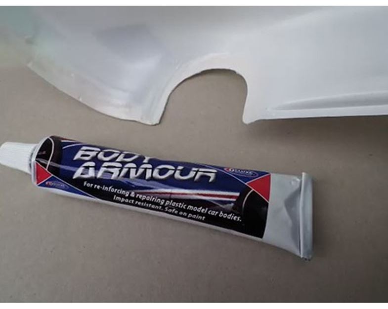 Deluxe Materials Body Armour is a highly flexible polymer adhesive specially designed for reinforcing & repairing model car bodies subject to the arduous conditions of model car driving and competition.