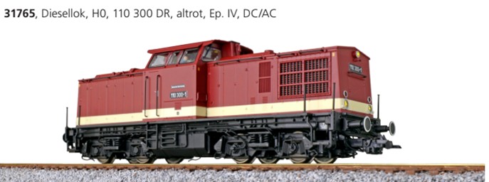 Produktinformationen "ESU 31765 Diesellok, H0, V100 DR, 110 300 DR, altrot, Ep IV"