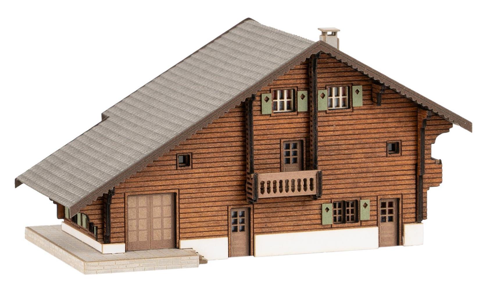 Dieses authentische FALLER Modellhäuschen ist eine Nachbildung des Originalbahnhofs Langwies, der entlang der malerischen Arosabahn/Rhätischen Bahn im Schweizer Kanton Graubünden thront.