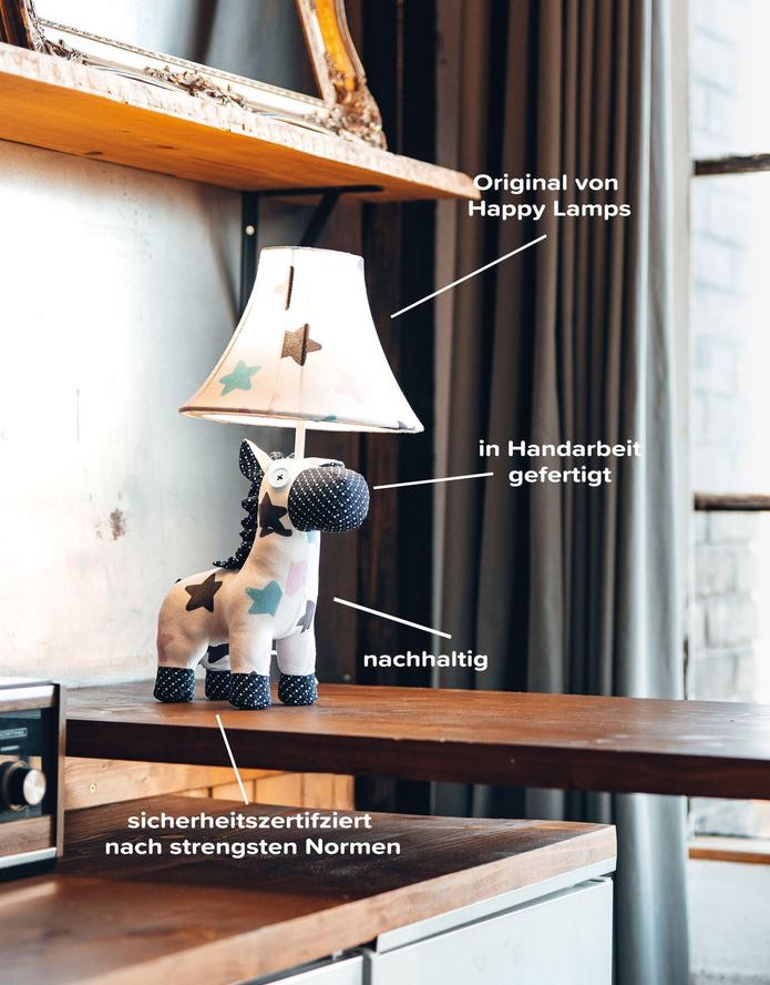 Unsere Happy Lamps in Stofftieroptik sind nach höchstem Standard durch das renommierte Testinstitut „Hansecontrol“ sicherheitszertifiziert. Sie werden in Handarbeit hergestellt und bestechen durch ihr exklusives Produktdesign. Schaue dir gerne unsere weiteren einzigartigen Modelle an. In unserem Onlineshop findest du die komplette Happy Family und kannst dir deinen Liebling direkt nach Hause bestellen.