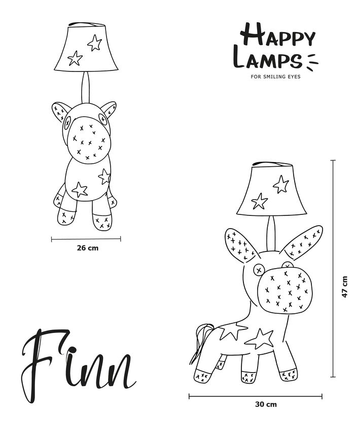 Das Glück der Erde liegt auf dem Rücken der Pferde. Finn liebt es, dich durch seinen Anblick glücklich zu machen. Er freut sich schon immer auf den Abend, wenn du sein Licht einschaltest und seine Sterne ausleuchtest - denn dann ist er der Star im Raum. Das großartige bei Finn ist, dass sein Charakter genau so ist wie sein Licht: Einfach unheimlich sympathisch, ohne dabei aufdringlich zu sein. Überall wo Finn steht, verbreitet er Happiness und sorgt für ein Lächeln bei seinen Mitbewohnern.