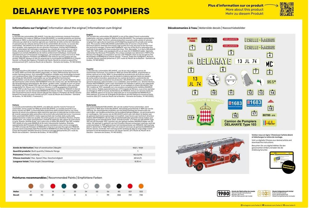 Produktinformationen "Heller 80780 Delahaye Type 103 Pompiers 1:24 Bausatz Neu OVP"
