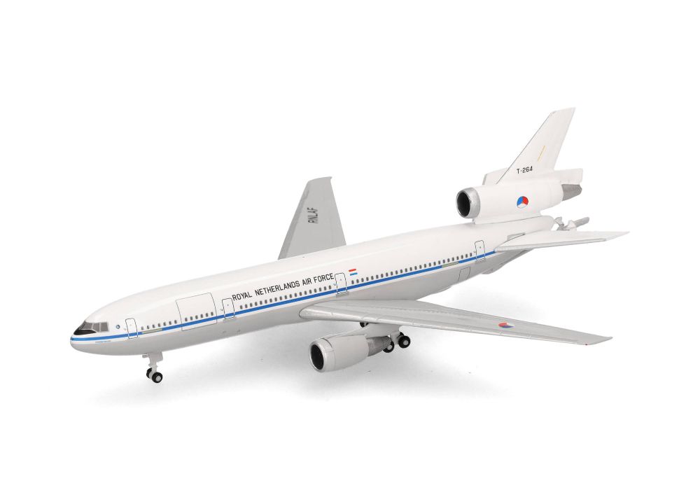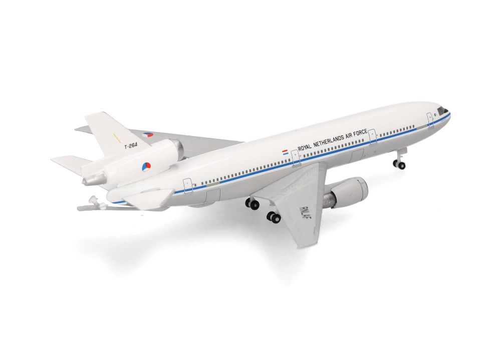Am 26. September 2024 verließen die letzten beiden KC-10 Extender den Luftwaffenstützpunkt Travis im US-Bundesstaat Kalifornien. Seit 1980 war die KC-10 ein wichtiger Bestandteil der amerikanischen und alliierten Streitkräfte und flog Lufttransport- und Luftbetankungsmissionen rund um den Globus. Die KC-10 konnte doppelt so viel Treibstoff mitführen wie die ältere KC-135 und gleichzeitig fast genau so viel Fracht befördern wie die C-17 Globemaster. Zum Gedenken an die Ausmusterung bringt Herpa eine kleine, auf drei Modelle limitierte Serie des Dreistrahlers heraus. Das erste Modell trägt die Abzeichen der 60th Air Mobility Wing, der letzten Einheit der US-Luftwaffe, die den Extender eingesetzt hat (Art.Nr. 538367). Einziger ausländischer Betreiber der KC-10 war die niederländische Luftwaffe, die ab 1995 – vor 30 Jahren – zwei Exemplare als Teil der 334. Staffel in der Luftbetankung auch für NATO-Partner in Dienst stellte, die häufig auch für friedenserhaltende und humanitäre Missionen weltweit im Einsatz standen.Als Teil der limitierten Serie zur Außerdienststellung des dreistrahligen Tankers erscheint dieses Modell in der zivil anmutenden Farbgebung, die sie 1995 bei der Auslieferung an die niederländischen Streitkräfte trug.