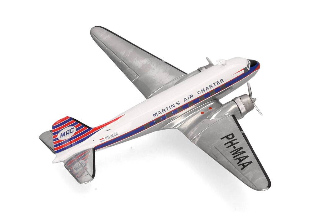 Johan Martin Schröder war ein Pionier der kommerziellen Luftfahrt in den Niederlanden. Selbst Pilot, gründete er 1958 Martin's Air Charter die erste Charterfluggesellschaft des Landes. Der allererste Flug mit dem damals einzigen Flugzeug, einer 11-sitzigen de Havilland Dove, führte von Amsterdam zur Mittelmeerinsel Mallorca. Ein Jahr später, im Jahr 1959, kaufte er die erste Douglas DC-3 - PH-MAA. Er blieb Eigentümer und Geschäftsführer bis zu seiner Pensionierung im Jahr 1998, 40 Jahre nach der Gründung seiner Fluggesellschaft. Am 2. Oktober 2024 verstarb Martin Schröder im Alter von 93 Jahren. Zum Gedenken an seine lebenslangen Leistungen für die kommerzielle Luftfahrt in den Niederlanden und weit darüber hinaus bringt Herpa ein Modell der ersten Douglas DC-3 von Martin's Air Charter mit der Kennung PH-MAA in einer limitierten Auflage heraus.