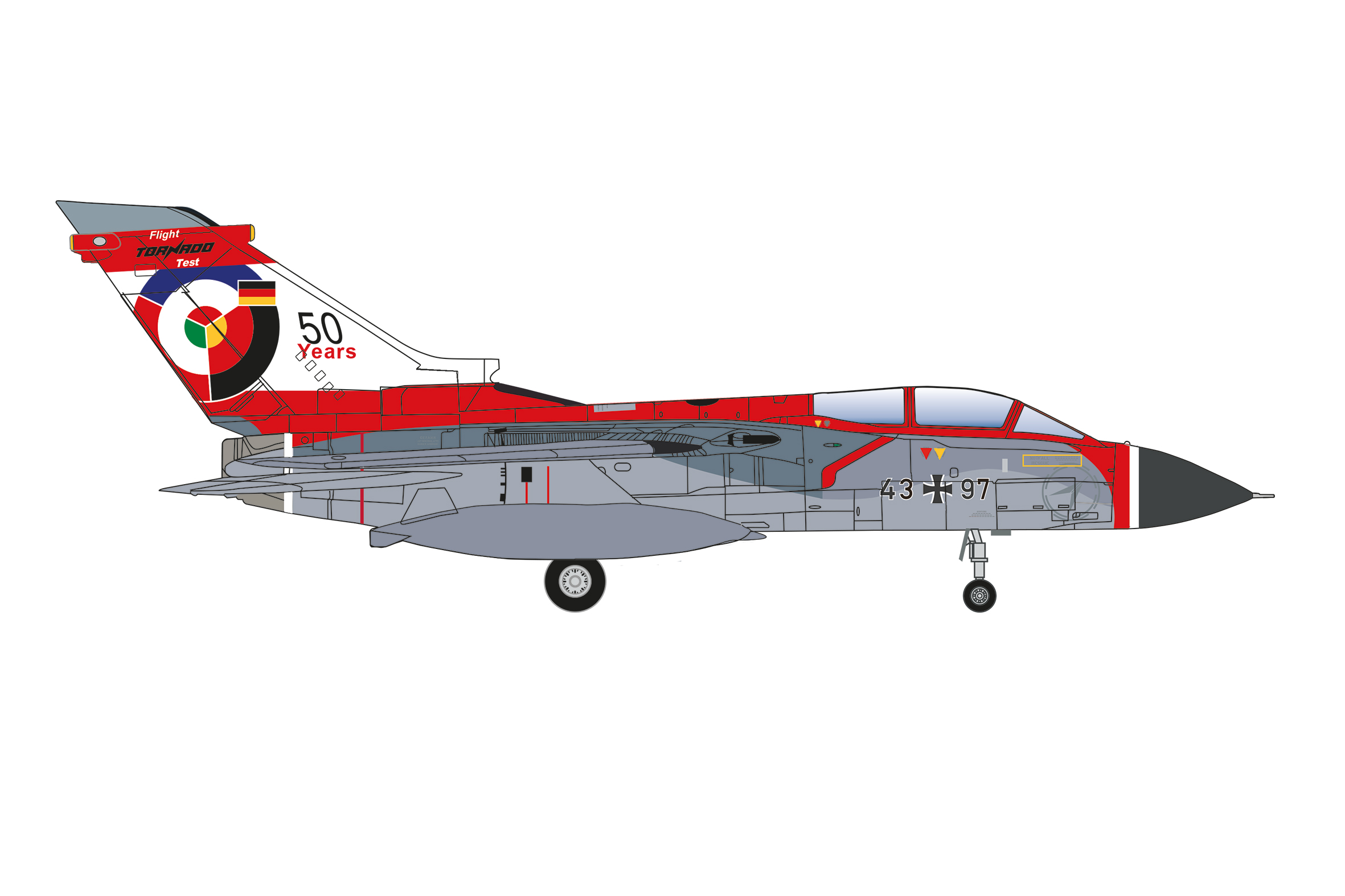 Am 14. August 1974 startete das Tornado Mehrzweckkampflugzeug im bayerischen Manching zu seinem Erstflug. 50 Jahre später steht das Flugzeug weiterhin bei den Luftstreitkräften Deutschlands, Italiens und Saudi-Arabiens im Einsatz. Zur Feier des besonderen Jubiläums lackierte die Wehrtechnische Dienststelle für Luftfahrzeuge einen ihrer Jets in Erinnerung an den ersten Prototyp und verwendete dabei Designelemente des Prototyps und der Vorserienflugzeuge, die in den späten 1970er und frühen 1980er Jahren, ebenfalls in Manching, für die Flugerprobung eingesetzt wurden. Das auffälligste Detail ist das Panavia-Tornado-Wappen am Heck, das die Kokarden der Partnerländer Deutschland, Italien und Vereinigtes Königreich in sich vereint.