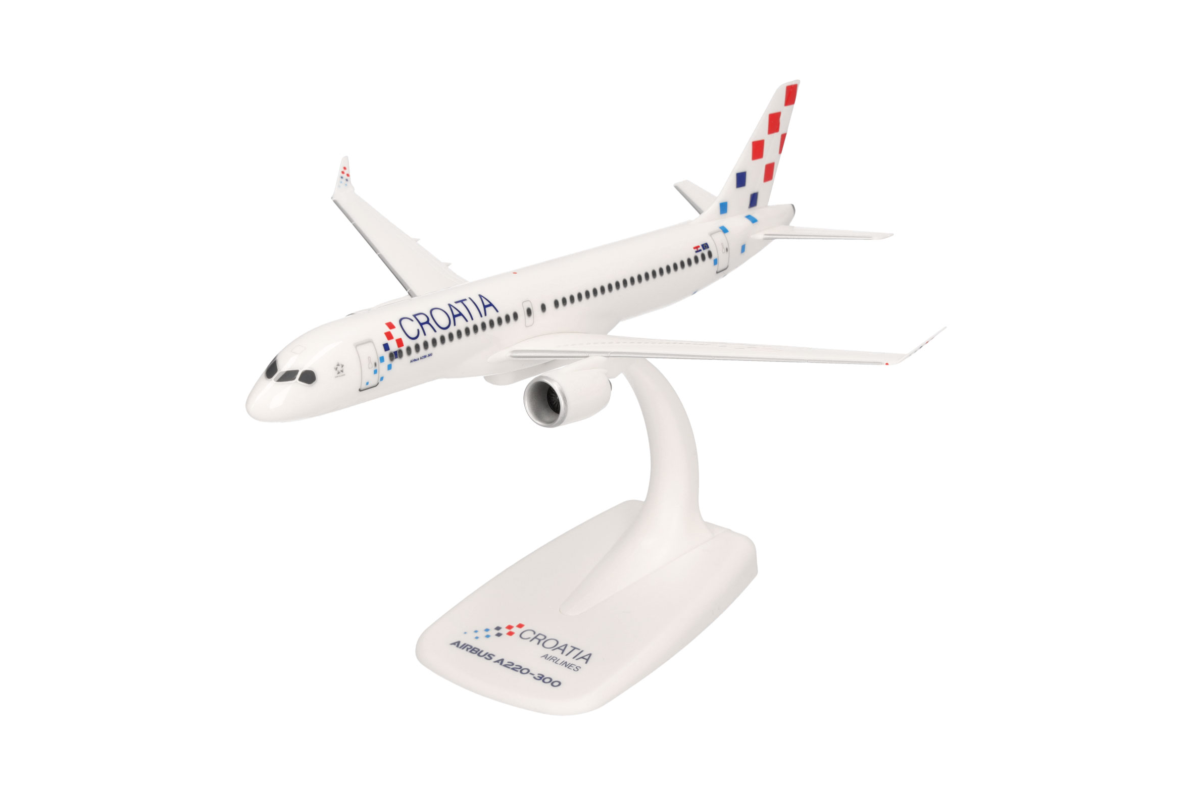Im Juli 2024 erhielt die kroatische Fluggesellschaft ihr erstes von insgesamt 14 bestellten Exemplaren des Airbus A220. Der erste Linienflug führte – aus historischen Gründen – von der kroatischen Hauptstadt Zagreb nach Frankfurt: 1992 führte der erste internationale Flug der damals neu gegründeten Airline ebenfalls zu dem größten deutschen Flughafen. In wenigen Jahren werden die A220 die komplette aktuelle Flotte der Croatia Airlines, bestehend aus A319, A320 und Q400 ablösen. SnapFit-Modelle von Herpa überzeugen mit einem unschlagbaren Preis-/Leistungsverhältnis. Sie werden mit einem Display-Stand geliefert und sind mit wenigen Handgriffen ohne Kleber oder sonstigen Werkzeugen zusammengebaut.