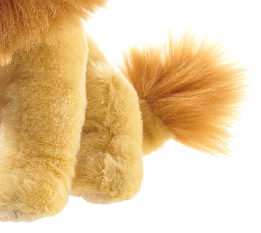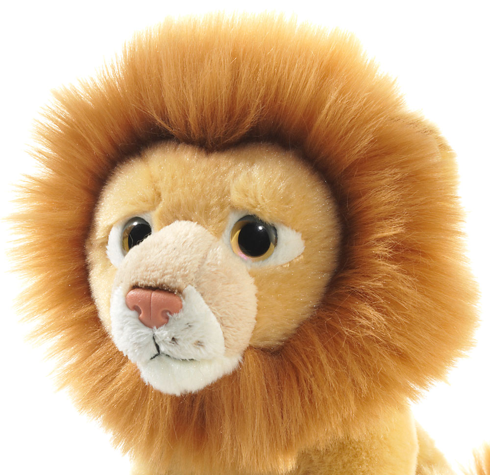 Der weich gefüllte, sitzende Löwe ist aus Soft Polyester Material gefertigt. Sie hat eine Kunststoffnase, ist weichgefüllt mit einer Beanbagfüllung und großen ausdrucksvollen Augen.