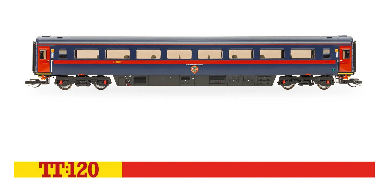 Mit der Betriebsnummer 42244 repräsentiert dieser Wagen einen Teil der legendären Hochgeschwindigkeitszüge, die den Fernverkehr auf der East Coast Main Line revolutionierten. Der GNER HST MK3 TS lässt sich nahtlos mit anderen TT:120 Mk3-Wagen und Triebwagen kombinieren und verleiht jeder modernen Eisenbahn Authentizität und Prestige.