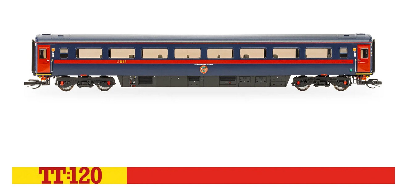 Dieser Wagen mit der Betriebsnummer 42242 war Teil der legendären Hochgeschwindigkeitszüge, die den Fernverkehr auf der East Coast Main Line revolutionierten. Der GNER HST MK3 TS lässt sich nahtlos mit anderen TT:120 Mk3-Wagen und Triebwagen kombinieren und verleiht jeder modernen Eisenbahn Authentizität und Prestige.