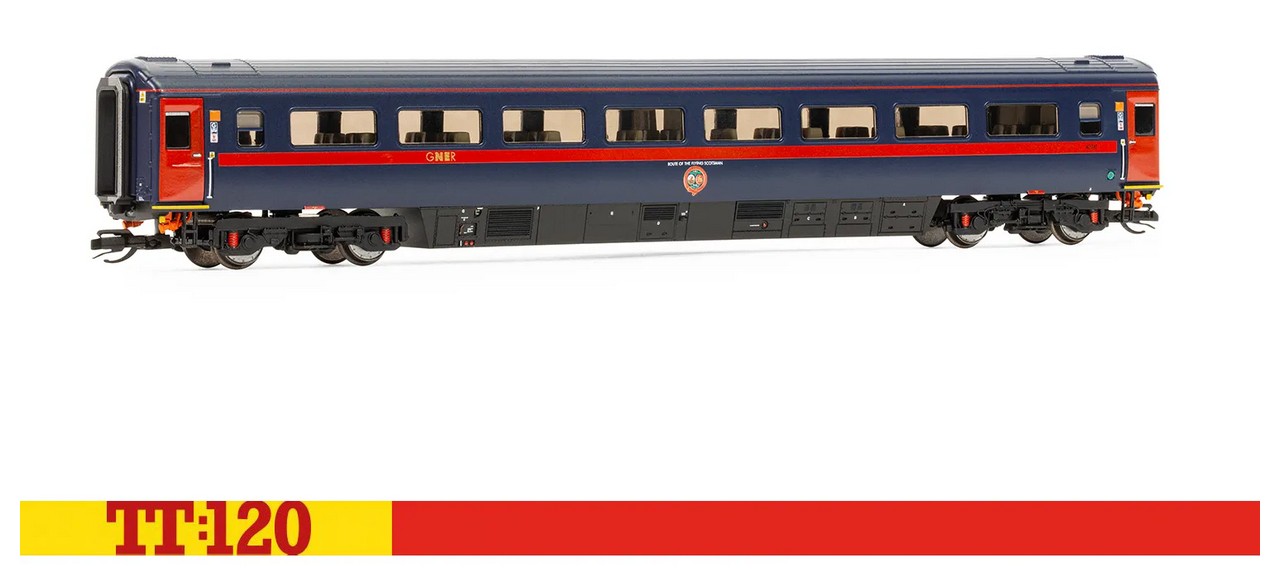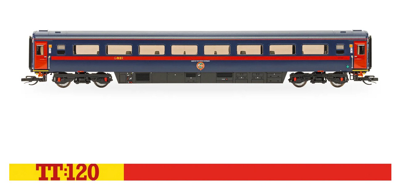 Der GNER HST MK3 TS lässt sich nahtlos mit anderen TT:120 Mk3-Wagen und Triebköpfen kombinieren und bringt so Authentizität und Prestige in jede Modellbahn der Moderne.