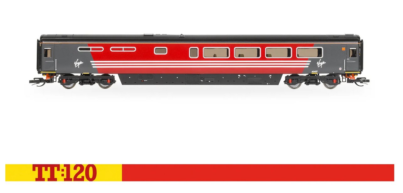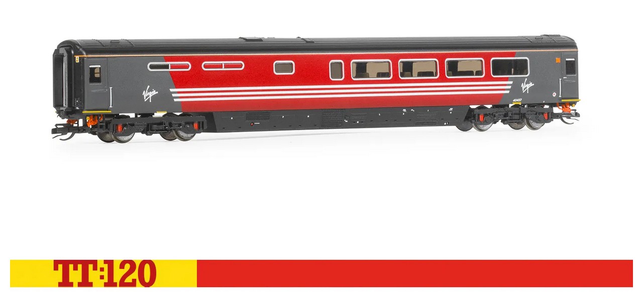 Bereichere deine TT:120-Sammlung mit dem Virgin HST Mk3 Coach TRSB 40437, einem detailgetreu gestalteten Trailer Restaurant Standard Buffet-Wagen.