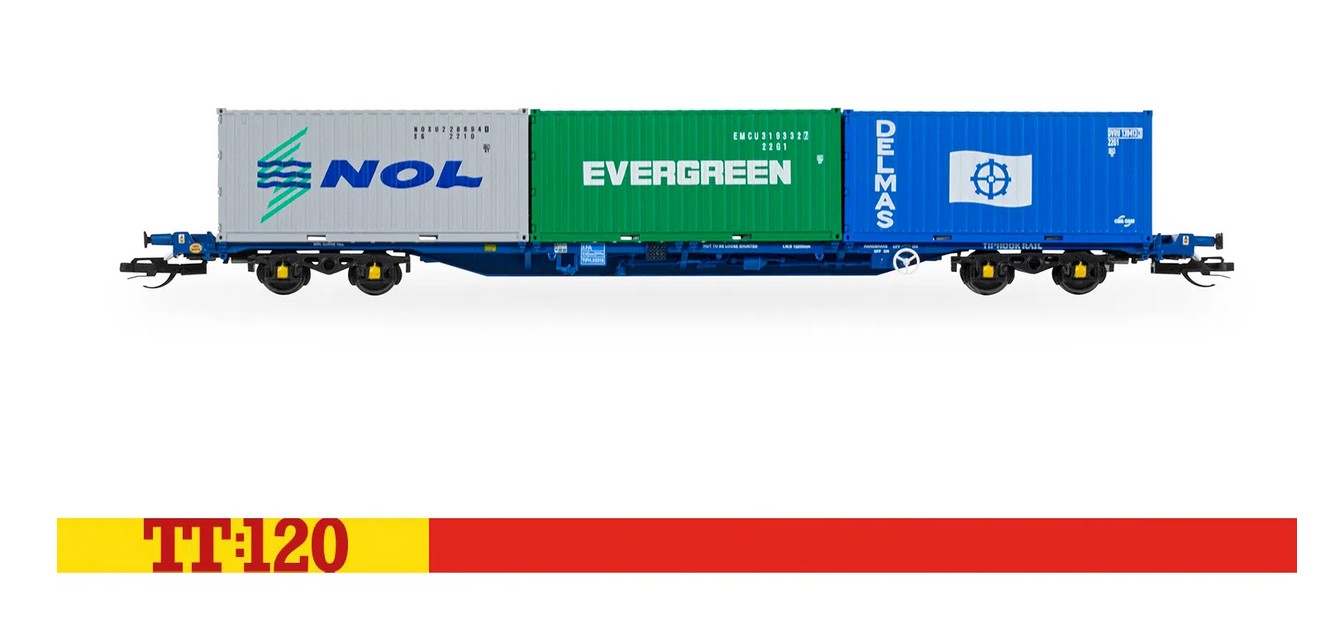 Produktinformationen "Hornby TT6032 Touax KFA Container Wagon 3x20 Containers Spur TT"