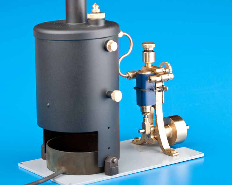 Mit seiner kompakten Bauweise und stehendem Kessel ist die Dampfmaschine ein richtiger Hingucker und ein technisches Highlight für das kleine Dampfschiff. Natürlich eignet sich die Maschine auch als Antrieb anderer Modellboote mit ca. 50 cm Länge oder einer Verdrängung von 1-2 kg.