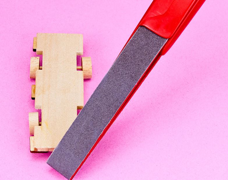 Sandpapierfeile mit Kunststoffgriff. Das Endlosschleifband wird über eine Federmechanik gehalten. Ist das Schleifband verbraucht kann es einfach weitergedreht oder ausgetauscht werden. Inklusive einem Schleifband mittlerer Körnung.