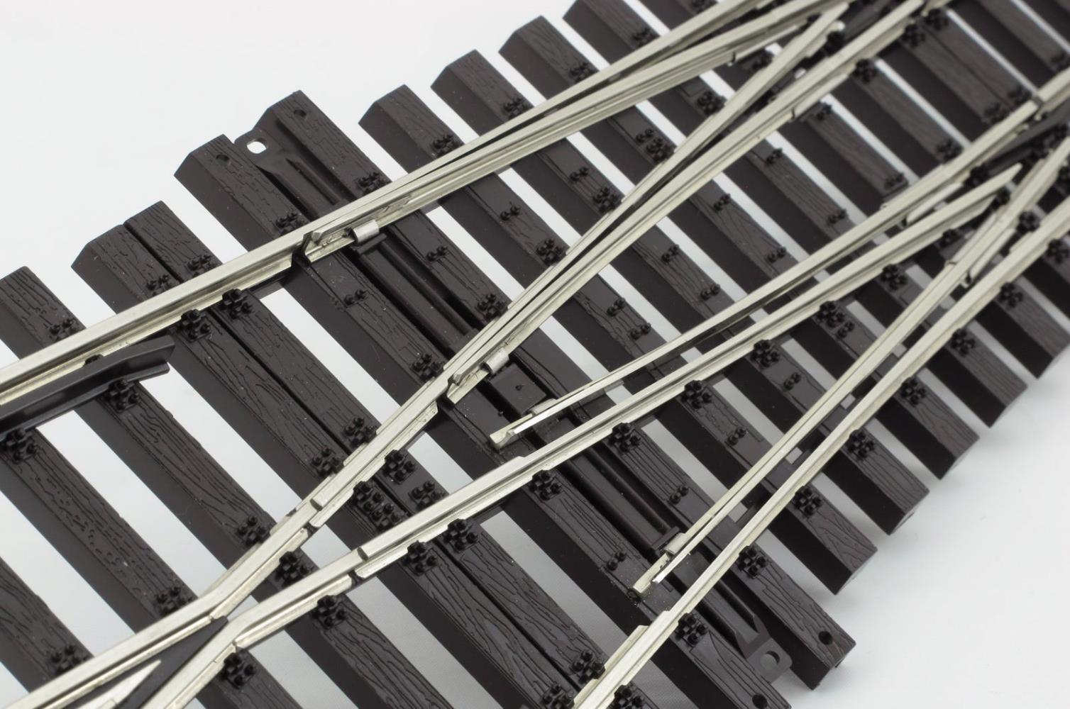 Lieferung mit zwei Weichenstellhebeln, kann mit zwei Antrieben 45040 zur digital bedienbaren Weiche ergänzt werden.