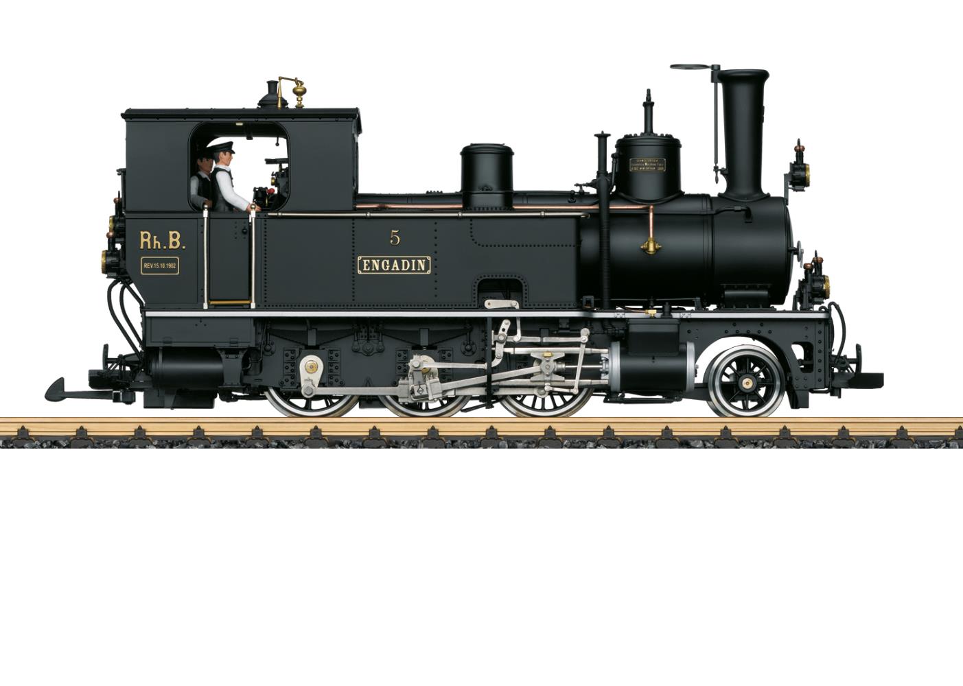 Modell der Dampflok "Engadin", einer Lok aus der ersten Lokserie der Rhätischen Bahn. Feindetailliertes Modell in schwerer Metallbauweise mit vielen angesetzten Details. Antrieb mit einem Hochleistungsmotor, alle Treibradsätze über Kuppelstangen angetrieben. Türen zum Führerstand und Rauchkammertür zum Öffnen, Führerstand mit kompletter Inneneinrichtung. Die bauarttypischen Unterschiede gegenüber der "Rhätia" sind berücksichtigt, so z.B. die Fenster hinten am Führerhaus oder die Beleuchtung. Originalgetreue schwarze Farbgebung und Beschriftung der Epoche I, so wie die Lok in den Anfangsjahren der RhB im Einsatz war. Ausgerüstet mit einem mfx/DCC-Decoder mit vielen Licht- und Soundfunktionen wie Spitzenlicht, Führerstandsbeleuchtung, Fahrgeräusch, durch Reedschalter auslösbare Pfeife und vieles mehr. Die hintere Kupplung kann im Digitalbetrieb ferngesteuert betätigt werden. Fahrgeräusch auch im Analogbetrieb funktionsfähig. Eingebauter Rauchgenerator mit radsynchronem Dampfausstoß sowie Zylinderdampf und Dampfausstoß an der Pfeife, wenn diese betätigt wird.