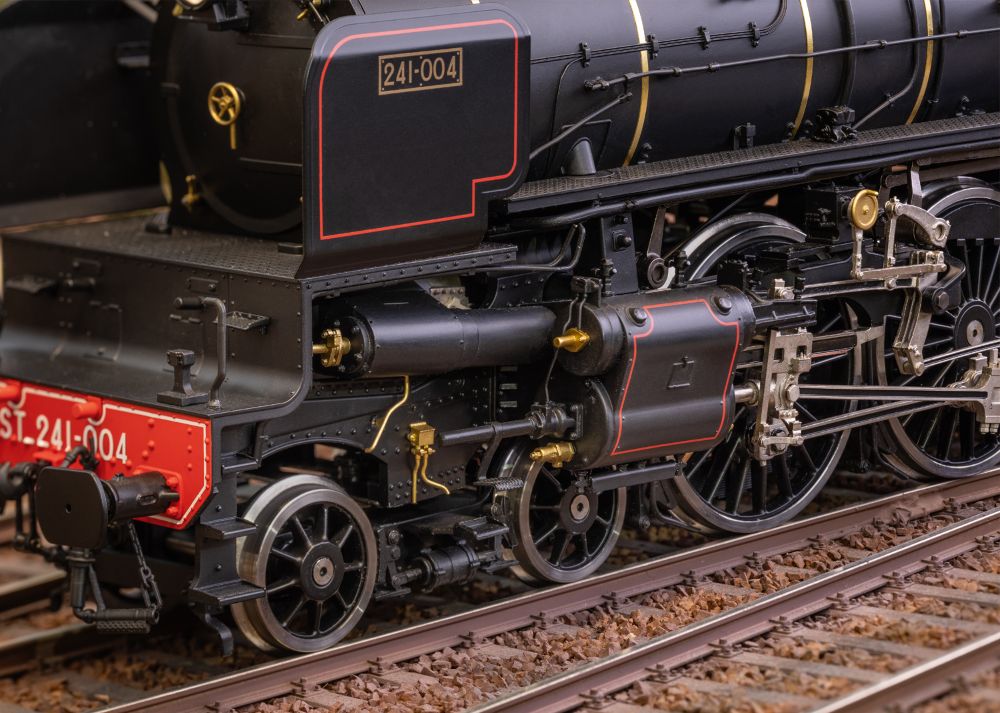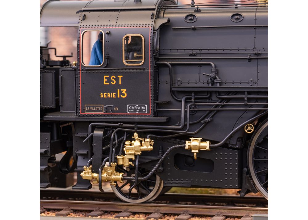 Vorbild: Schwere Schnellzug-Dampflokomotive mit Schlepptender Serie 13 (241-A) der Französischen Ostbahn (EST). Schwarze Grundfarbgebung mit schwarzem Fahrwerk. Ausführung als Lokomotive für das Schnellzugwagen-Set "EDELWEISS". Typspezifische Änderung der Windleitbleche, 2-Licht-Spitzensignal mit Petroleum-Lampen, mit einer Lampe oben und einer Lampe unten und vielem mehr. Lok-Betriebsnummer EST 241-004. Betriebszustand um 1931.