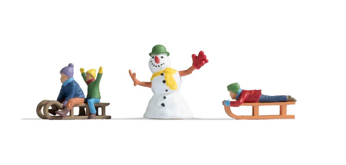 Das Figuren-Set »Kinder im Schnee« sind Modellfiguren in der Spurweite 0 (Maßstab 1:43). Die im Set enthaltenen Figuren eigenen sich perfekt für schöne Landschaftsbau Winterszenen mit viel Schnee. Die Figuren geben vorallem das spielen und toben im eiskalten Schnee auf Ihrem Diorama perfekt wieder. Nicht nur der Schneemann ist auf Ihrer Anlage ein echter Hingucker, sondern auch die schlittenfahrenden Kinder, welche gerade den steilen Berg hinunter sausen, lassen Ihre Freunde staunen.