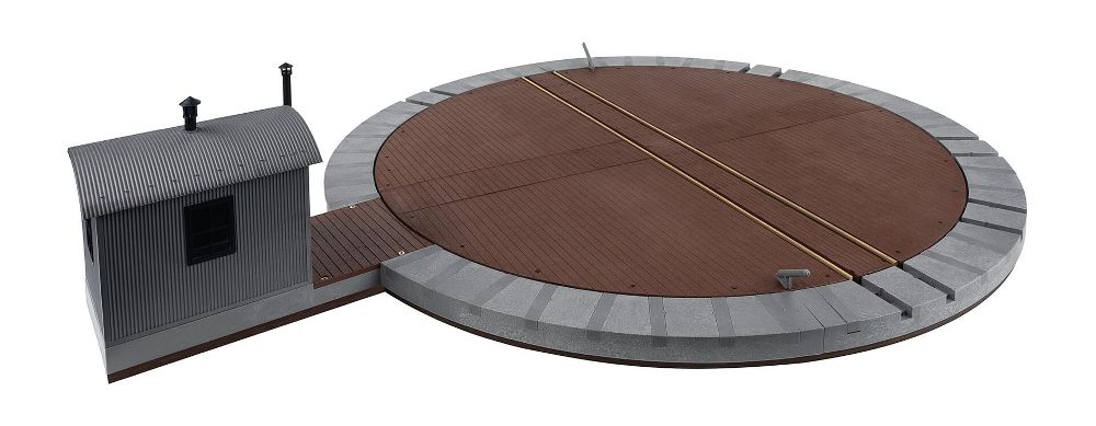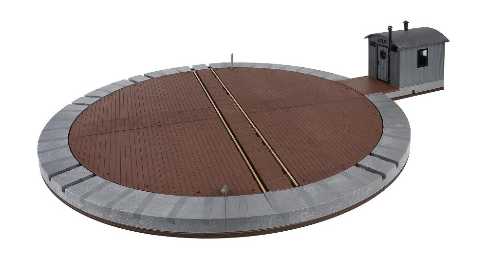 Die wetterfeste und kugelgelagerte Schmalspurdrehscheibe überzeugt durch höchste Präzision und Langlebigkeit. Ein besonderes Highlight ist der neue Decoder, der sowohl Analog- als auch Digitalbetrieb unterstützt. Das zusätzlich integrierte Kehrschleifenmodul ermöglicht einen reibungslosen Betrieb. Angetrieben durch einen robusten 12 V Gleichstrom-Getriebemotor (im Bausatz enthalten), ist die Drehscheibe im Rechts-/ Linkslauf frei steuerbar. Ein passendes Wärterhäuschen, das den Antrieb abdeckt, ist im Bausatz enthalten. Gesamtdurchmesser der Drehscheibe: Ø 696 mm Durchmesser der Drehbühne: Ø 590 mm Gesamtlänge: 892 mm Höhe der Drehscheibe: 22 mm Höhe mit Wärterhäuschen: 169 mm Min. Abgangswinkel: 15° Anschluss: 16 V Wechselspannung oder an eine Digitalzentrale