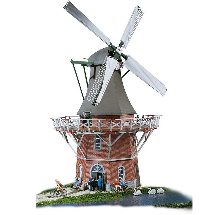 In typisch niederländischer Bauweise, mit gemauertem Unterbau. Ohne Motor. Durch Aufspannen der Windsegel ist Windbetrieb möglich. Motor (Art. 330090) ist nachrüstbar.