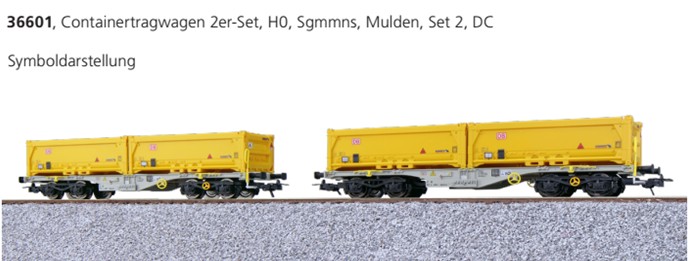 Produktinformationen "Pullman 36601 Containertragwagen, H0, Sgmmns, D-AAEC Ep. VI, Mulde"