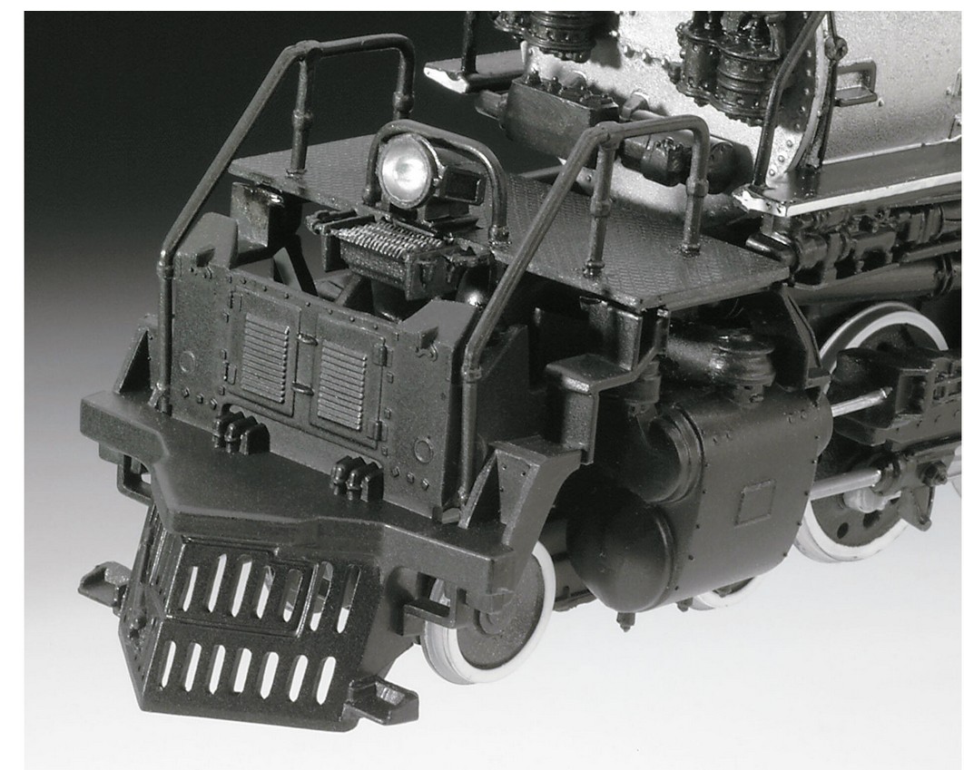 Die amerikanischen Big Boys gehören zu den längsten und größten jemals gebauten Serien- Dampflokomotiven der Welt. Während der späten 30er Jahre nutzte Union Pacific oftmals Hilfslokomotiven um Züge von Ogden, Utah nach Wasatch über einen steilen Pass zu ziehen. U.P. wollte dieses System vereinfachen und beauftragte die eigene Entwicklungsabteilung eine neue Lokomotive zu entwerfen, die einen 3.600 t-Zug (bis max. 4.200 t) den steilen Pass hinaufziehen konnte. Die 25 Big Boy-Lokomotiven wurden in 2 Gruppen gebaut. Die erste Gruppe, genannt Klasse 1, wurde ab 1941 gebaut. Die zweite Gruppe (Klasse 2) wurde 1944 gebaut. Der letzte Güterzugtransport der durch eine Big Boy-Lok bewältigt wurde, fand im Juli 1959 statt. Die meisten Big Boy wurden 1961 außer Dienst gestellt. - Einteilige Kesselnachbildung - Separate Rauchklappe - Detaillierter Lokführerstand - Bewegliche Lenkgestelle - Detaillierte Antriebsräder - Detailliertes Antriebsgestänge - Frontschutzgitter - Detaillierter Kohletender mit Leitern - Fein detaillierte Gleisnachbildung (ca. 48 cm) - Abziehbilder für 2 Versionen der Union Pacific