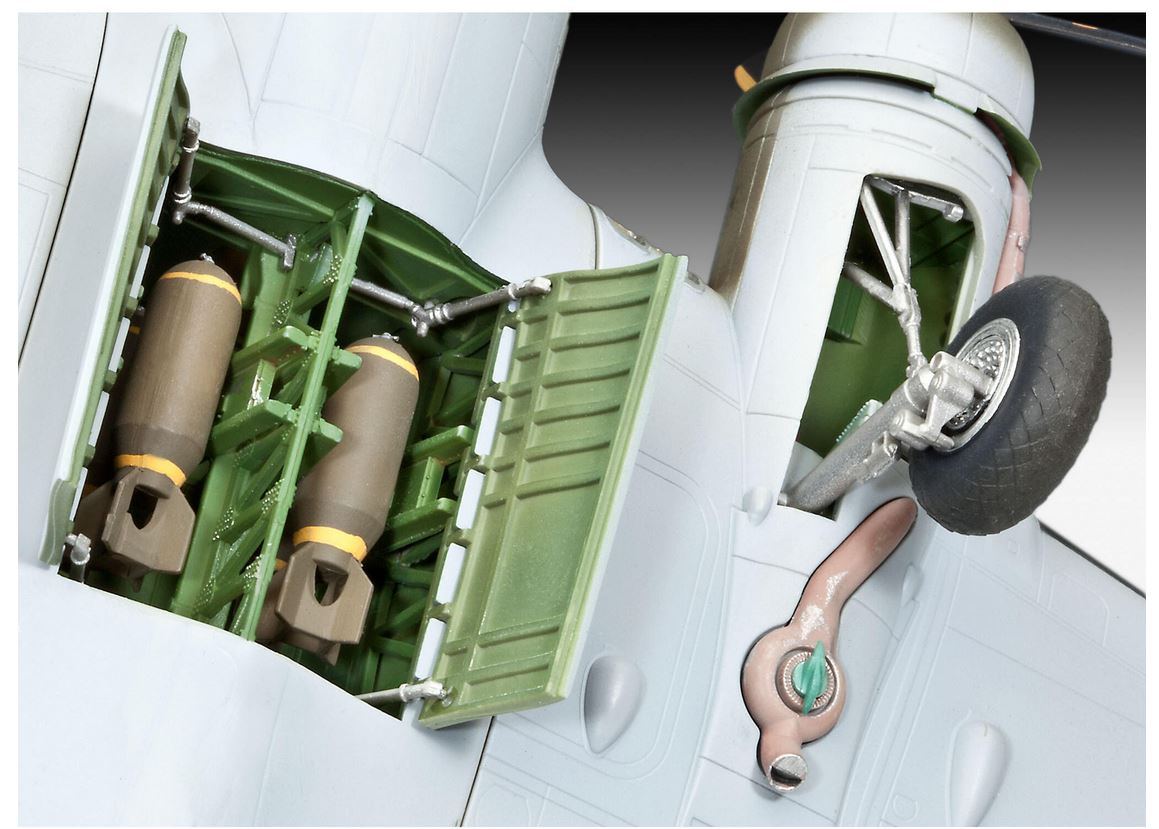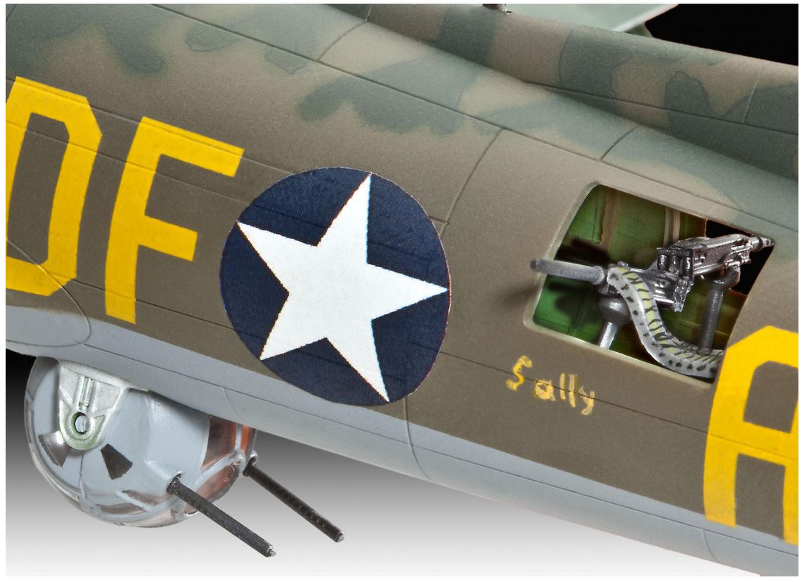Detaillierte Oberflächen mit versenkten Blechstößen - Detailliertes Cockpit mit Konsolen, Armaturenbrett - Einzelne Sitze - Kompletter Bombenschacht mit Ladegestellen - 4 Bomben - Bombenzielgerät und Sitz im Bug - Detaillierter Funker/Navigatorraum mit Gerätekästen - Seitenfensteroptionen für die MG-Bestückung - Beweglicher MG-Kugelturm - Detaillierter oberer MG-Turm - B-17 Klarsichtteile für die Front und den mittleren oberen MG-Stand - MG-Heckstand - Separates Seitenruder - Tragflächen wahlweise mit geöffneten Landeklappen zu bauen - 4 detaillierte Sternmotoren mit Abgasring - Kühlungsring wahlweise geöffnet oder geschlossen zu bauen - Turbolader-Imitation - Separate Lufteinlaßkanäle - Separate Höhen- und Querruder - Detailliertes Fahrwerk Abziehbilder für 2 USAAF-Versionen: - B-17F-10-BO, serial 41-24485, DF-A, "Mephis Bell", 8th Air Force, 91st Bomb Group, 324rd Bomb Squadron, Bassingbourn, UK, May 1943 - B-17F-10-BO, serial 42-29591, LL-Z, "The Shamrock Special", 8th Air Force, 91st Bomb Group, 401st Bomb Squadron, Bassingbourn, UK, October 1943