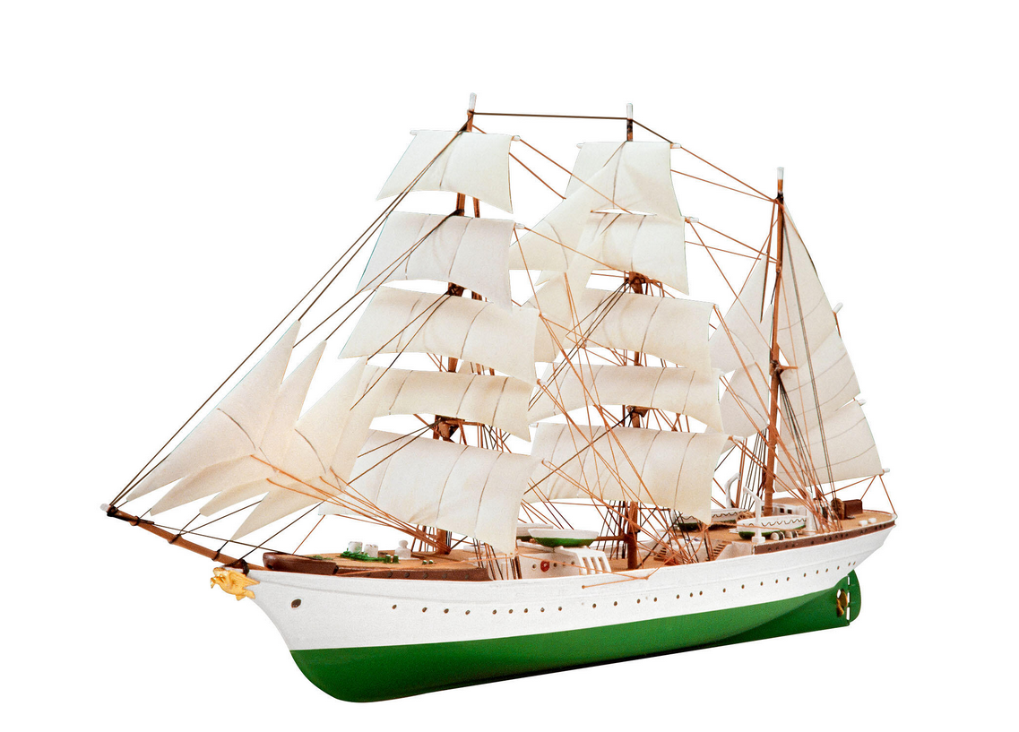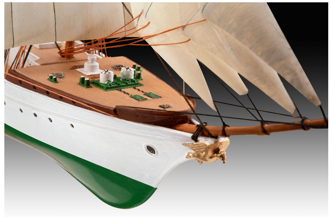 Modellbausatz des wohl bekanntesten Schiffs der deutschen Marine, dem Segelschulschiff Gorch Fock. . Einfach zu bauendes Modell . Zweiteiliger Rumpf . Enthaltenes Garn . Einteiliges Hauptdeck . Strukturierte Segel . Displayständer . Authentische Abziehbilder