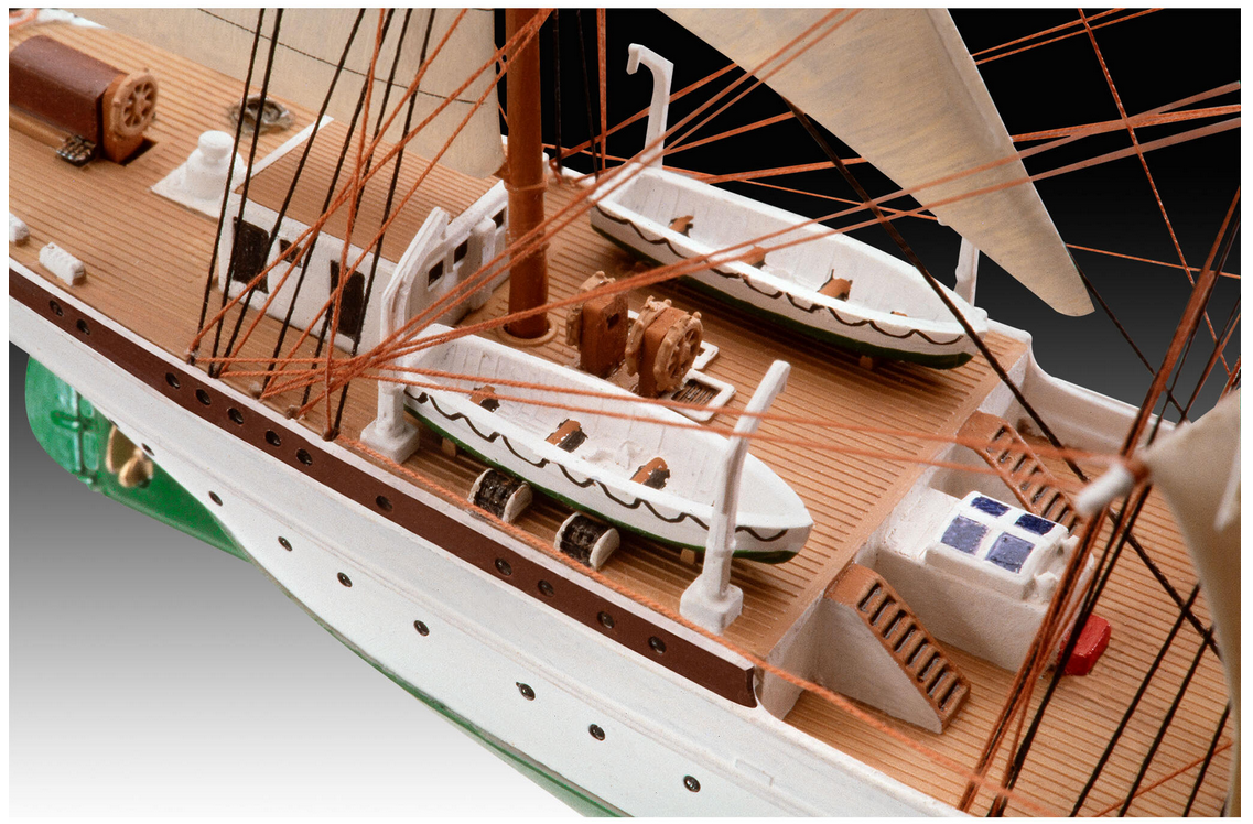 Modellbausatz zur Gorch Fock im Maßstab 1:350 (Level 3) mit 75 Teilen. Geeignet für den Einstieg in den anspruchsvollen Modellbau (10+ Jahre).
