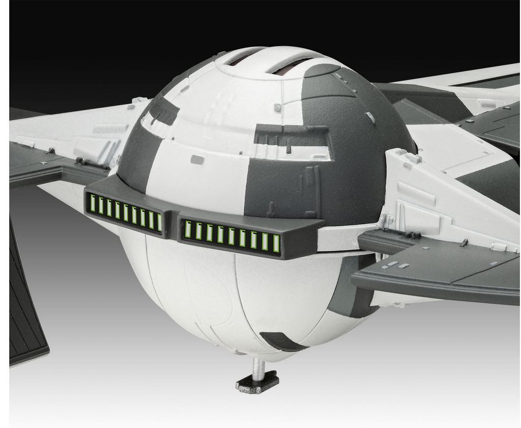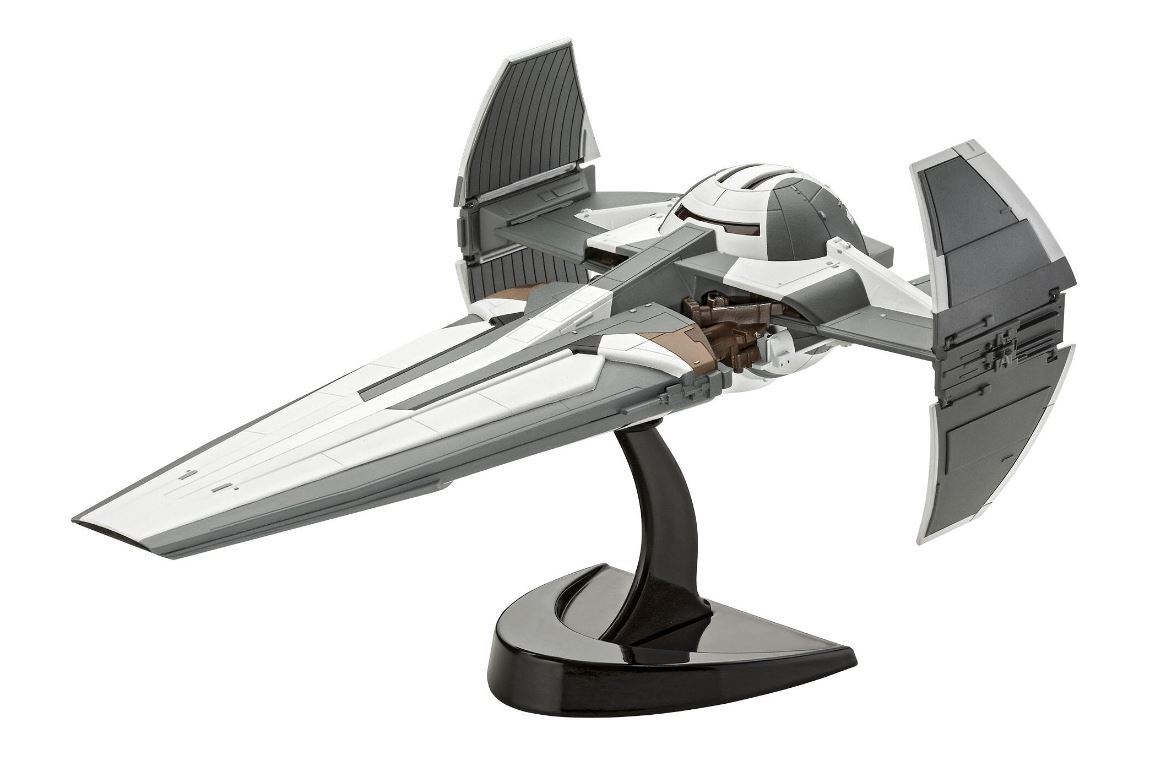 Einfach zu bauender Modellbausatz des bekannten Schiffs von Darth Maul aus Star Wars Episode 1.Maßstab 1:120. 35 Teile. 221 mm Länge. Geeignet ab 10 Jahren.