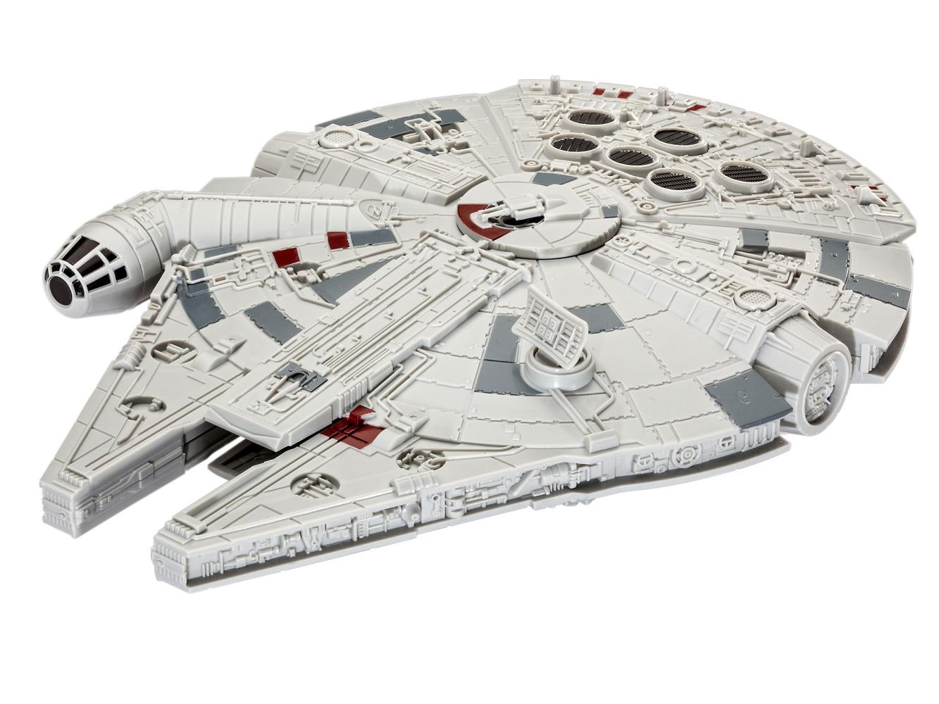 Einfacher Bausatz des Millennium Falcon mit Licht und Sound. Maßstab 1:164. 19 Einzelteile. 20,9 cm Länge. Geeignet ab 6 Jahren.