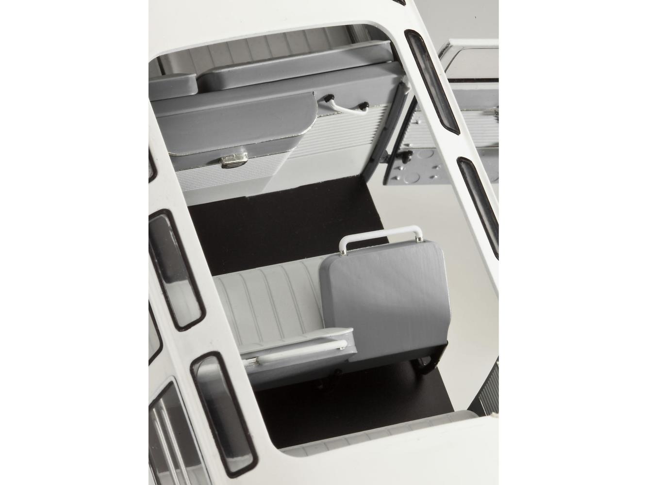 Die Luxusausführung des Kleinbusses, das Neunsitzer Sondermodell, wird bis heute als "Samba Bus" bezeichnet. Maßstab 1/24. 173 Teile. 18,1 cm Länge. Geeignet ab 12 Jahren.