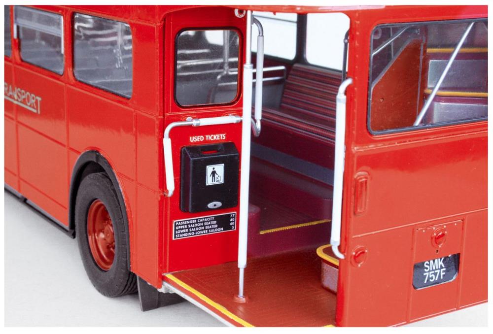 - Mehrteilige Karosserie - Detaillierte Wiedergabe der Oberflächenstrukturen - Wiedergabe des kompletten Fahrgastraums mit 72 Sitzen - Detailliertes Cockpit - Mehrteiliger Leyland und Scania-Motor - Bewegliche Motorhaube - Mehrteiliger Unterboden - Drehbare Räder - Typischer, offener Eingangsbereich - Zwei separate Fahrgastebenen - Wahlweise abnehmbares Dachsegment - Viele Klarteile - Abziehbild für zwei RML-Versionen FIGUREN NICHT IM BAUSATZ ENTHALTEN!