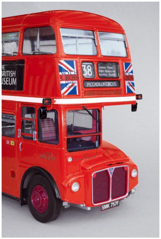 Im Verhältnis zu bisherigen Bustypen galt der Routemaster mit seinem integralen Design von Chassis und Karosserie als regelrecht innovativ. Maßstab 1/24. 391 Teile. 38,1 cm Länge. Geeignet ab 14 Jahren.