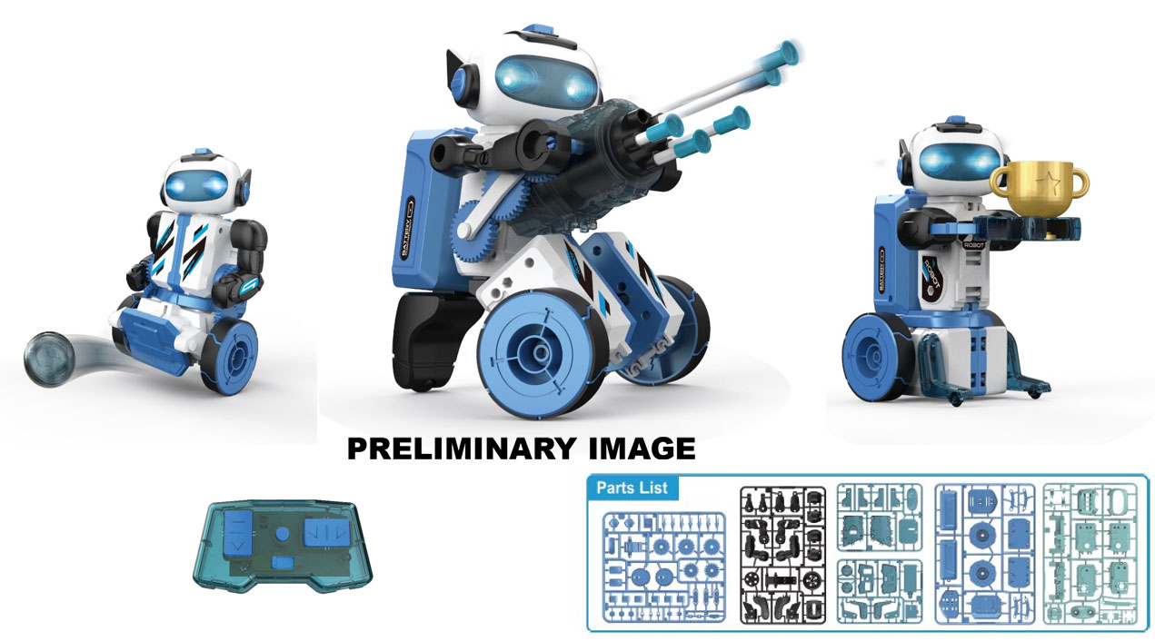 Schießen, Greifen und Kicken! Möglichkeiten, die Ihnen das 3 in 1 Robot Kit bietet. Die Bauteile und Fernbedienung müssen selbst zusammengebaut werden und können dann in verschiedene Roboter Versionen verbaut werden. Mit Programmierfunktion. Gut für...... - Förderung von Konzentration & Geduld - Feinmotorik & den Umgang mit Werkzeugen - Räumliches Denken