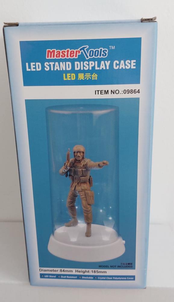 Display mit geradem Deckel, 84 mm Durchmesser, 185 mm Höhe, inklusive LED-Lämpchen. Maße:
