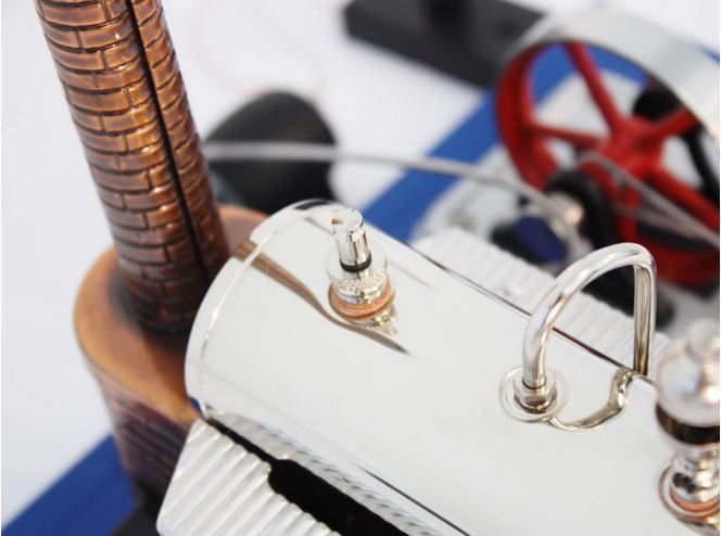 Zusammen mit dem beliebten Einsteigermodell D10 erhalten Sie den Dynamo mit einer Laterne. Die LED der Laterne leuchtet während des Betriebs der Dampfmaschine matt. Weitere Laternen können noch hinzugefügt werden.